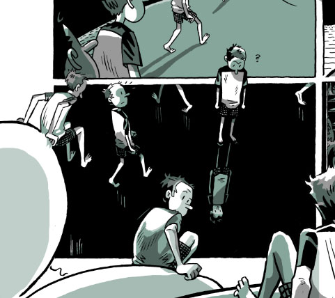 "Awakening, Glenn Ganges can sense where the 2D mirror ends and the 3D space he feels his body inhabiting. He looks into a mirror, fully aware of both what he is doing and what it means. "