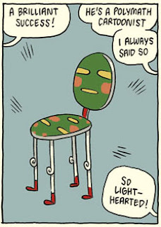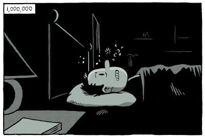I spent a lot of time on this one. It's got gags and some pretty fancy cartooning, and an infinite grid of panels, only some of which you can see and read, but occasionally you catch a glimpse of it fading off into infinity, and also the grid contains itself nested within itself at different levels.
