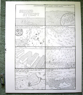 This minicomic is 32 pages and contains 4 stories. Two of them are already up at What Things Do (here and here). The strips have been reformatted, and of course they're not in color here but they look pretty good in black and white. And then there's two new stories you haven't seen yet. One of those is another Postcard from Fielder and the other is called First Try and is "weird" and abstract and "interesting." Hand-colored covers!