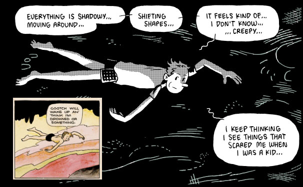 Ganges #3 also is a kind of homage to the "daydreaming" Frank King pages (in both Bobby Make Believe and Gasoline Alley) with some Little Lulu love in the mix. That's how I thought of it, anyhow.