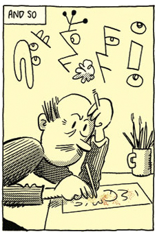 We come to love the look of a comic, and the feeling expands to a general one of enjoying the way comics are drawn and composed, and even of the ink and paper. We want to make one. And having made one we're not entirely happy with it. Let's say that we've taken a notion to introduce a naturalistic element. So we base our figures on people we know. But the problem is that the things they're saying and doing are not quite authentic. So let's base these aspects on actual situations that we have observed. And so by increments we've put ourselves in the work.