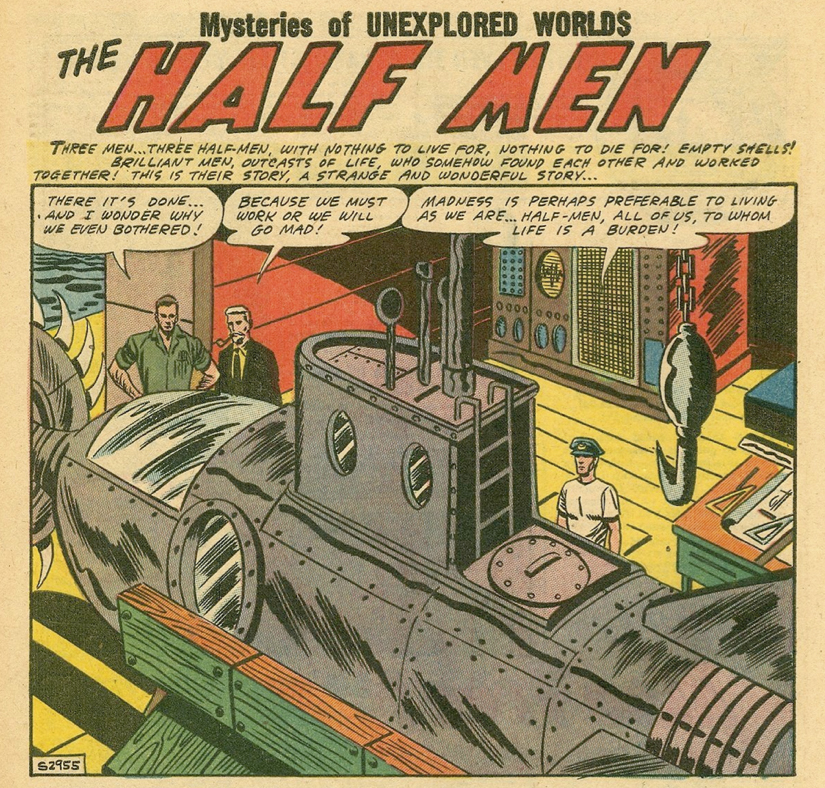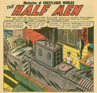 It came from Mysteries of Unexplored Worlds #8 (1956) and is named "The Half Men."* The GCD credits list only a penciler (Bill Molno) and an inker (Sal Trapani). I would imagine that someone out there has an idea who might have written it. I didn't look as deeply into that mystery as maybe I should have. Please let me know if you have some idea who might have written it.