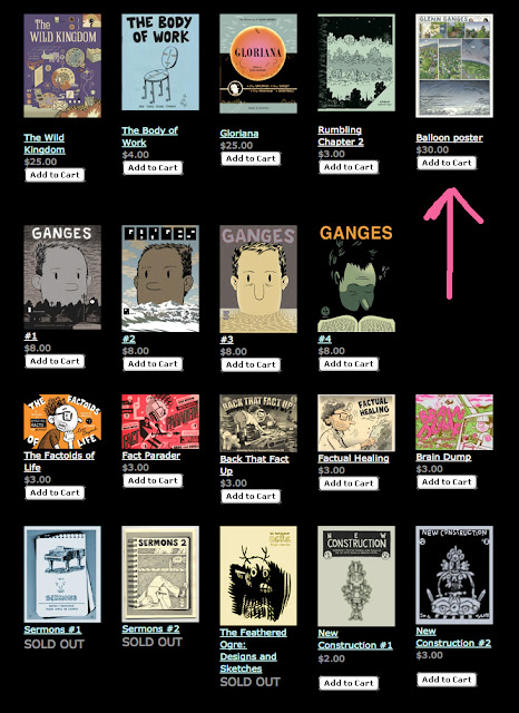 Hey, the Balloon poster is in the Catastrophe Shop now. Be sure to let me know if you want MATTE OR GLOSSY. Other items are also available, as you can see.